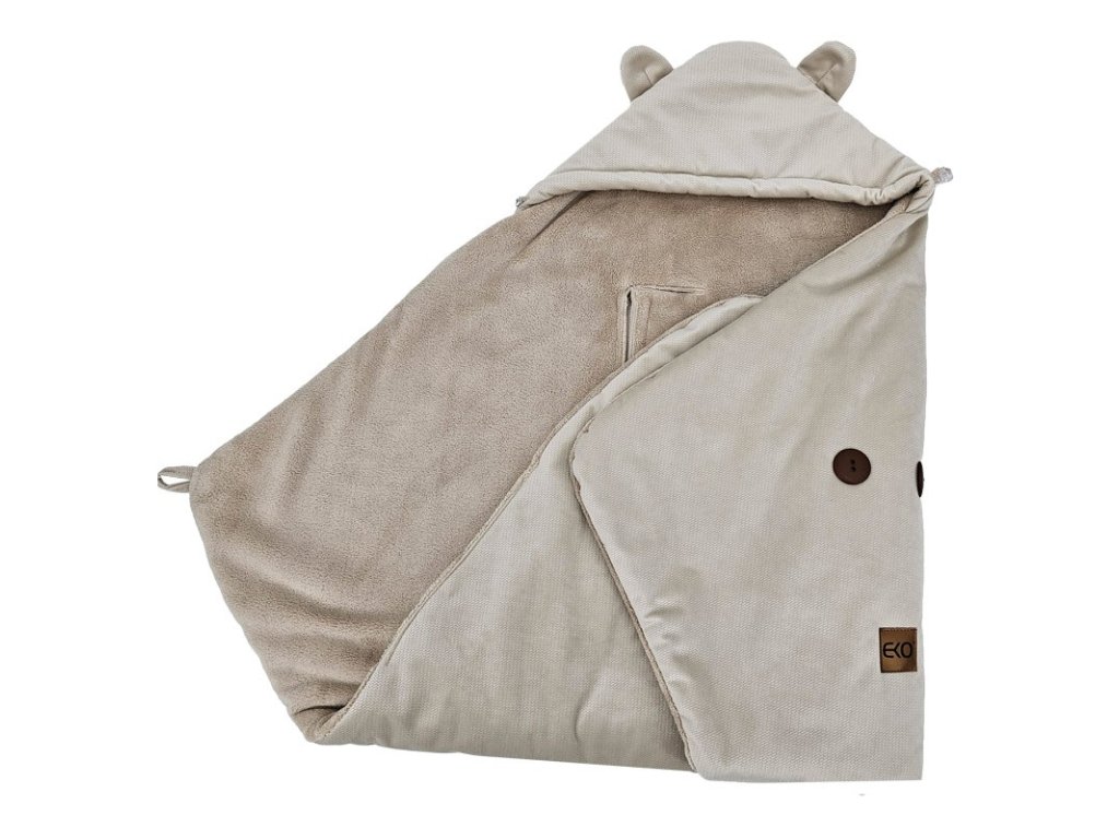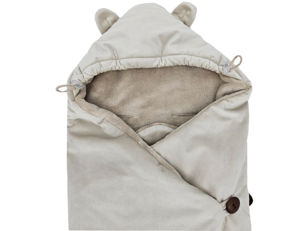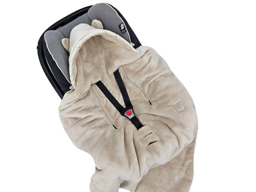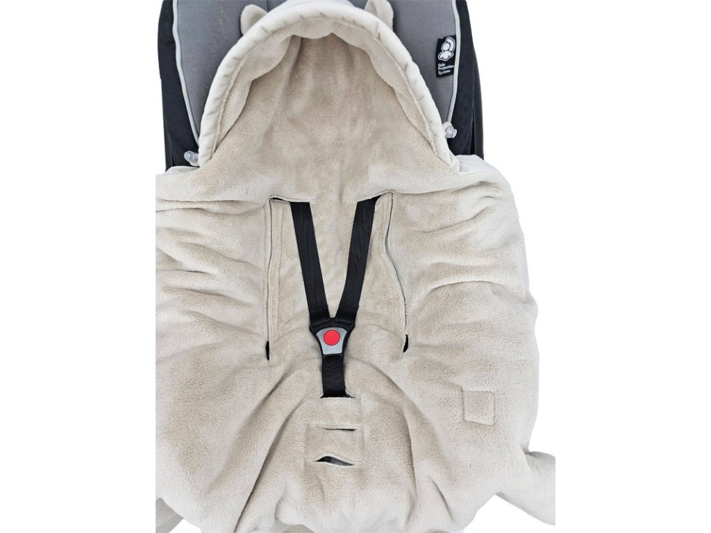 Tato deka je určena k použití v autosedačce nebo i samostatně. Speciální systém otvorů a upevnění umožňuje její připevnění k autosedačce, aniž by bylo nutné rozepínat pásy, a po připevnění a upevnění lze dítě zabalit.