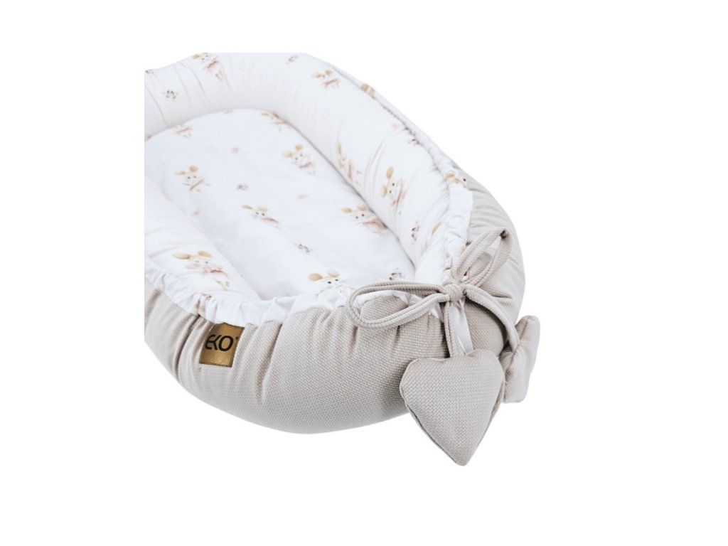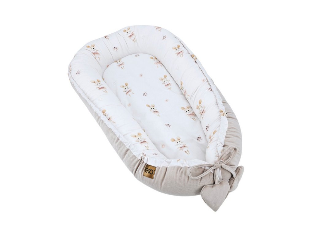 Multifunkční dětský kokon s rozkošným designem, který poskytuje bezpečí a pohodlí pro spící děti. Skvělá alternativa k tradičním zavinovačkám a šiškám. Praktičnost kokonu znamená, že jej lze použít jako podložku na hraní. Kokon se také nejlépe používá v posteli s maminkou a tatínkem jako ochrana před umačkáním nebo udušením peřinou nebo v postýlce. Kokon má vysoké okraje, které usnadňují položení dítěte na bok, což je důležité, pokud má dítě reflux.