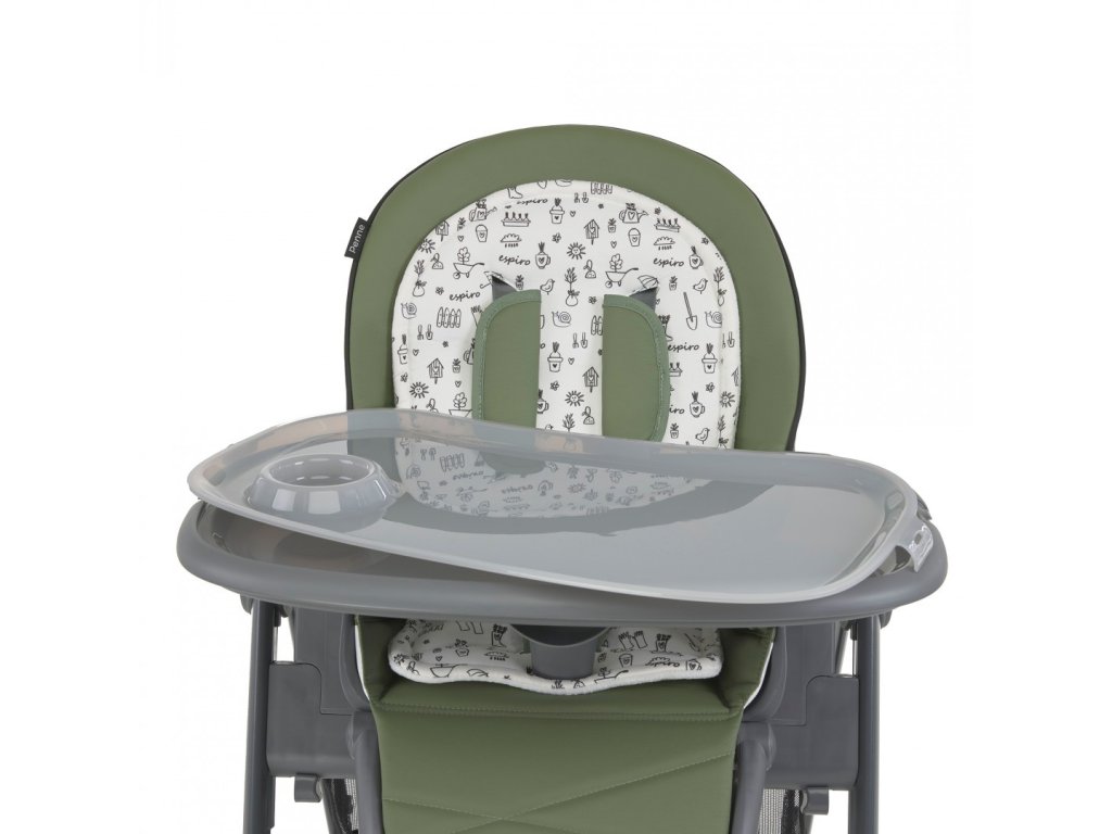 Espiro Penne si mezi rodiči získalo uznání díky nadprůměrnému pohodlí pro miminko a funkčnosti. 3-stupňové nastavení opěradla, 5-stupňové nastavení výšky sedadla, 3-stupňové nastavení opěrky nohou a prostorné sedadlo jsou funkce, které se přímo promítají do uživatelského pohodlí. Možnost sklopení opěradla a opěrky nohou umožňuje zaujmout polohu vleže, což je ideální pro miminka, která mohou být unavená z „lahodných“ jídel.