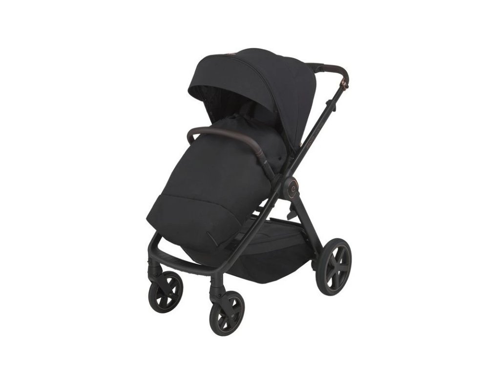 - teleskopická rukojeť pokrytá ekokůží – je elegantní a praktická; pomocí ní si přizpůsobíte kočárek podle své výšky,