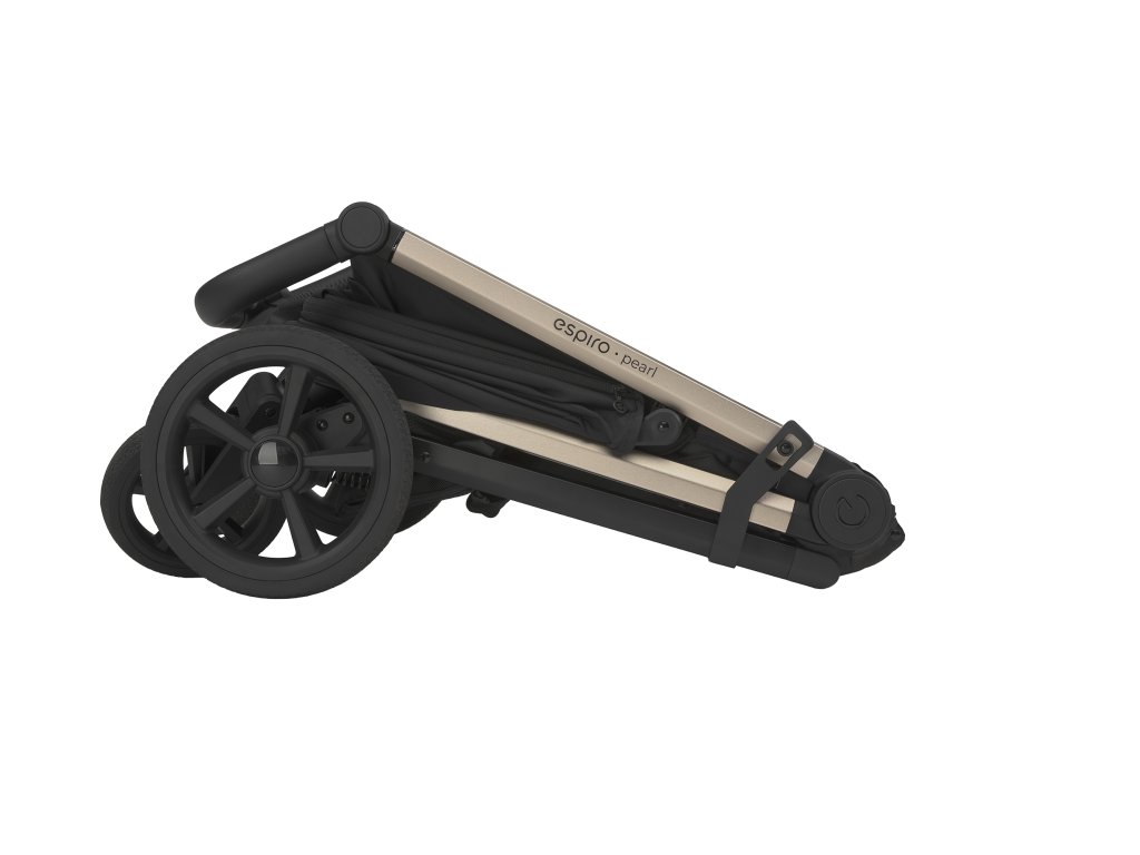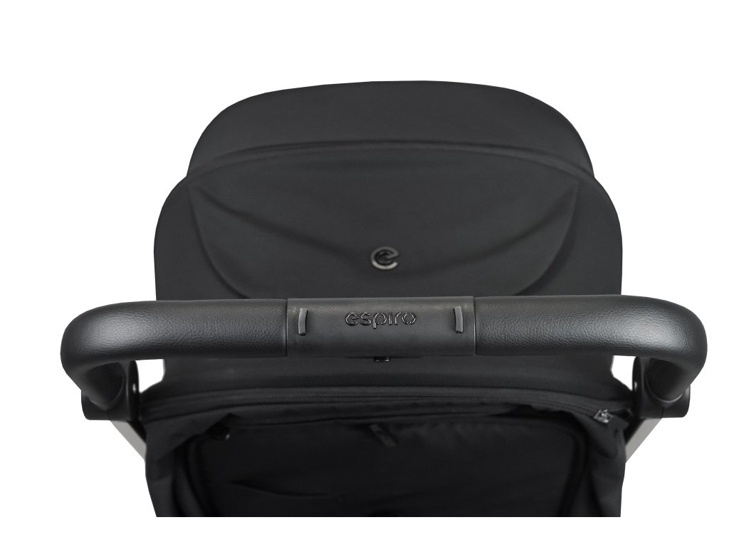 Kočárek Espiro Pearl má v ceně: vnitřní prodyšnou vložku, nánožník, držák na nápoje, dětské madlo a i poruh k jednoduchému přenášení složeného kočárku.