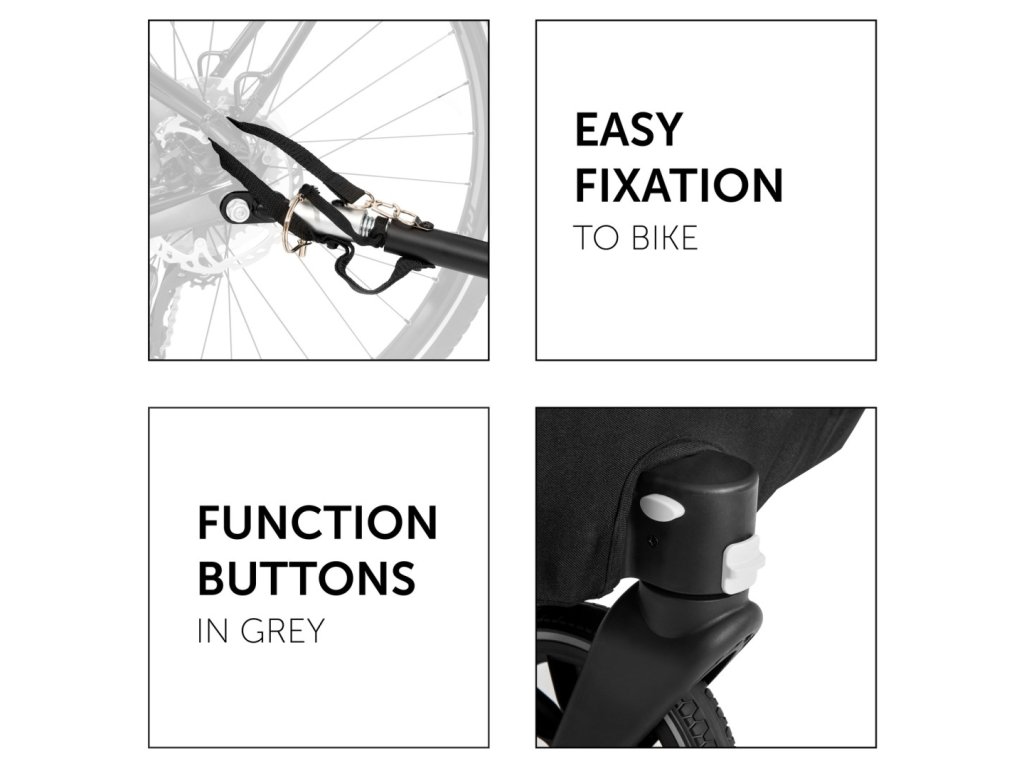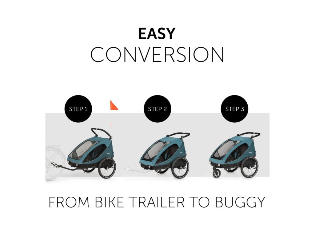 JEDNODUCHÁ PŘEMĚNA VE TŘECH KROCÍCH // Šedá funkční tlačítka usnadňují intuitivní přeměnu z kočárku na vozík za kolo a naopak. Díky tomuto dobře viditelnému a jednoduchému ovládání je přeměna bez pomoci druhého dospělého hračkou, ať na cestách nebo v případě spontánní změny plánu.SNADNÉ PŘIPOJENÍ A ODPOJENÍ // DRYK DUO lze kdykoli a rychle připojit k jízdnímu kolu. Oj je uložena v samostatné tašce, která šetří místo, a k přívěsu a k jízdnímu kolu se připevňuje v několika jednoduchých krocích a s dvojitým zajištěním.SKLÁDÁNÍ JEDNOU RUKOU A SNADNÉ SKLADOVÁNÍ // Složit DRYK DUO je hračka díky funkci One-Hand Fold a jeho praktická velikost ve složeném stavu umožňuje snadné uložení, když ho nepoužíváte.