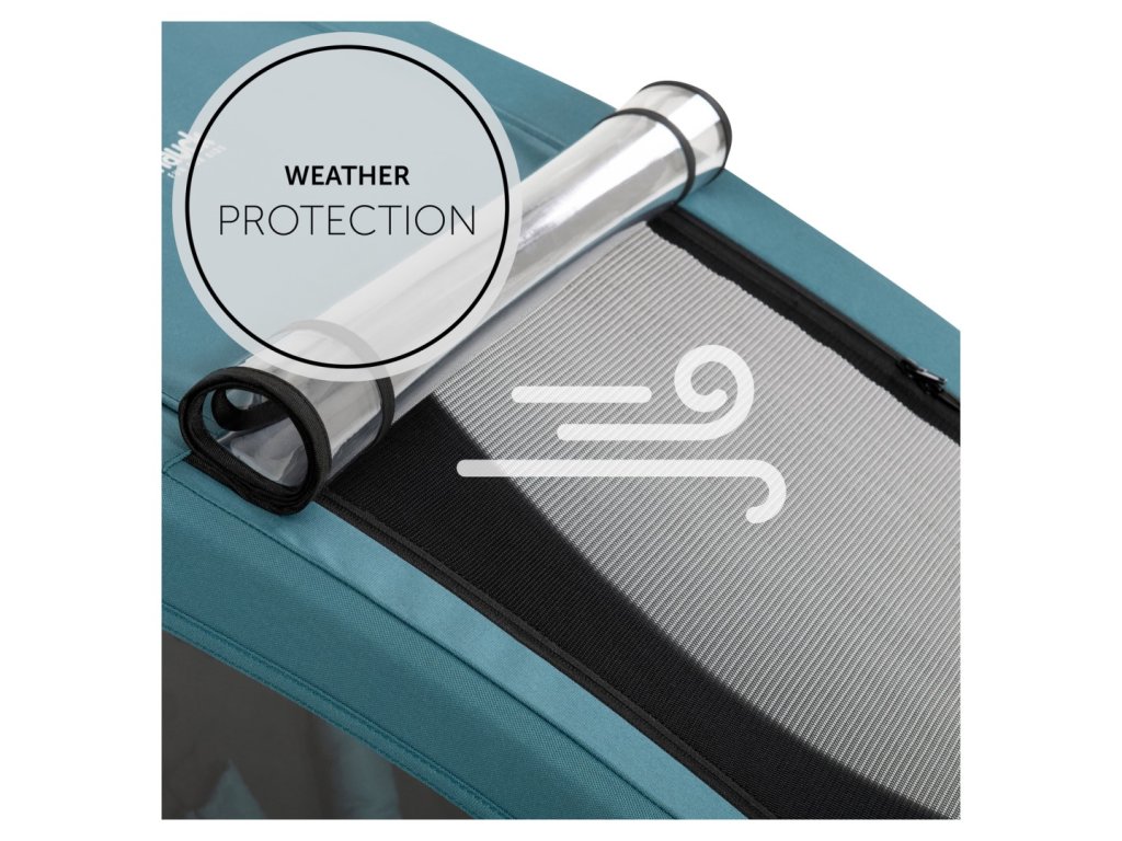 VYSOCE KVALITNÍ KOLA PRO VĚTŠÍ POHODLÍ PŘI JÍZDĚ // DRYK DUO je vybaven propracovanou kombinací otočného gumového kola s aretací vpředu a velkých, vzduchem plněných zadních kol. Nabízí vám i vašim dětem bezpečnou, plynulou a stabilní jízdu ať už jste na silnici nebo na procházce. STŘÍŠKA 2 V 1: OCHRANA PROTI NEPŘÍZNIVÉMU POČASÍ A MOSKYTIÉRA // Stříška proti nepříznivému počasí ochrání vaše děti před příliš silným větrem na cyklistické túře nebo lehkým mrholením. Moskytiéra zajišťuje v létě větrání a chrání před hmyzem. V několika jednoduchých krocích můžete jednu nebo obě vrstvy upevnit v gumové smyčce, dokud je nebudete znovu potřebovat.CHYTRÝ XL ÚLOŽNÝ PROSTOR // Dostatek místa na nákupy, hračky a další věci: XL úložný prostor je snadno přístupný, zajištěný zipem a lze do něj naložit až 6 kg. Praktické vnitřní kapsy pro děti a přídavné kapsy na přední kolo a oj neponechávají nic náhodě.