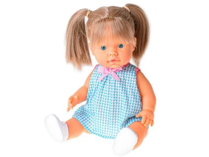 Mluvící panenka s měkkým látkovým tělem a s vlásky po celé hlavě. Po vytažení dudlíku z úst začne panenka říkat „mama“, „papa“ a vydávat reálný zvuk plačícího miminka.