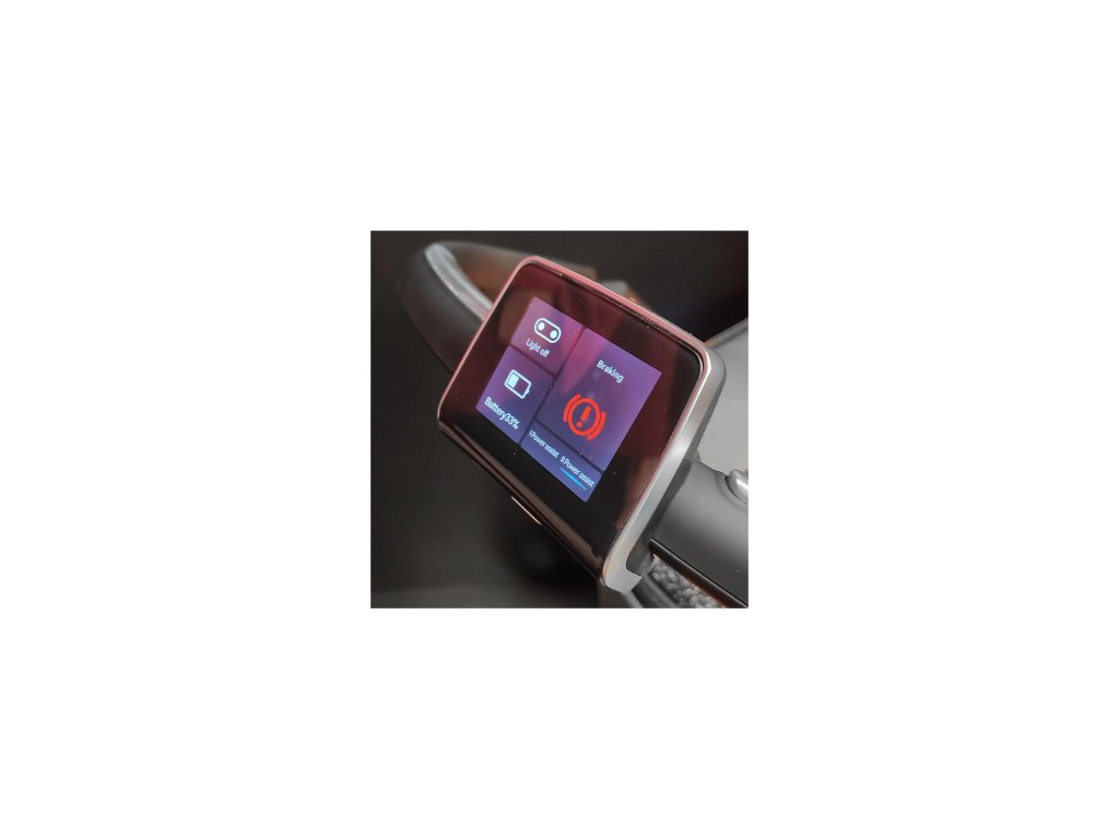 - Rukojeť s monitorem nabití baterie, rychlosti a osvětlení