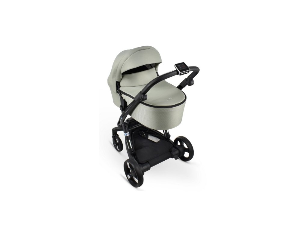 Elektronický asistent řízení. Kočárek je vybaven elektronickým motorem, který pomáhá s řízením a umožňuje rodičům ovládat rychlost a směr pomocí vestavěných ovladačů. To usnadňuje navigaci na delší vzdálenosti a v náročném terénu, což je ideální pro dlouhé procházky nebo návštěvy míst s různorodým terénem.