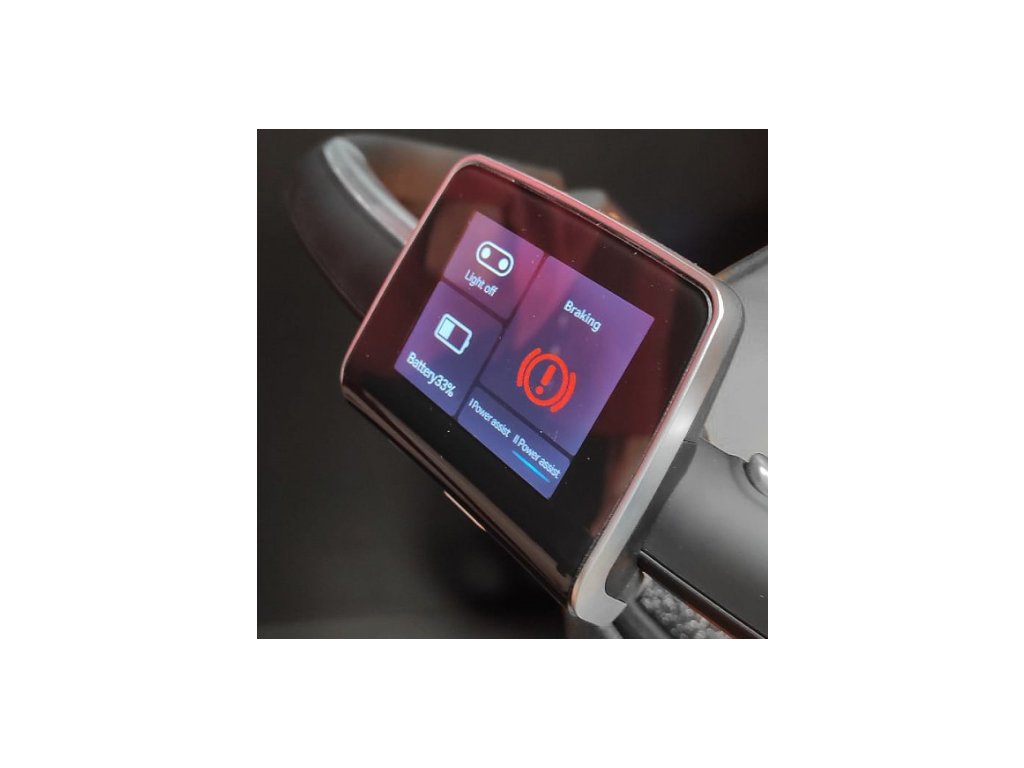 - Rukojeť s monitorem nabití baterie, rychlosti a osvětlení