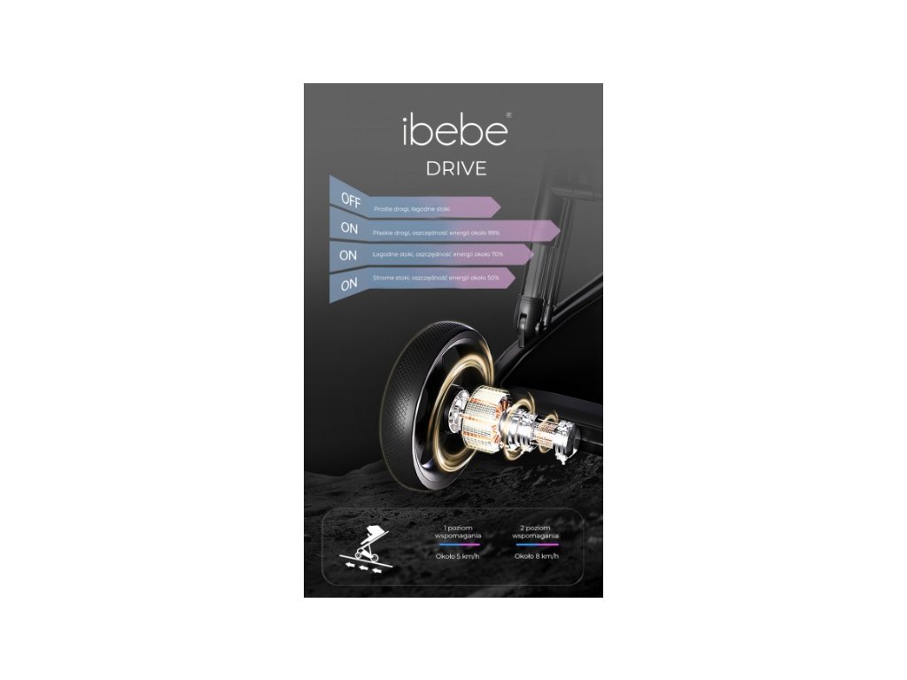 Má elektronický motor, který zajišťuje asistovanou jízdu. Rodiče mohou ovládat rychlost a směr pomocí vestavěných ovladačů. Elektronická asistence usnadňuje navigaci na delší vzdálenosti a v náročnějším terénu, což může být obzvláště užitečné při dlouhých procházkách nebo návštěvách míst s různorodým terénem. Kočárek má nastavitelnou rychlost, která vám umožní přizpůsobit tempo vaší jízdy vašim preferencím. Elektronická brzda je obzvláště účinná na svazích a zajišťuje stabilitu a ovladatelnost kočárku v náročných podmínkách.
