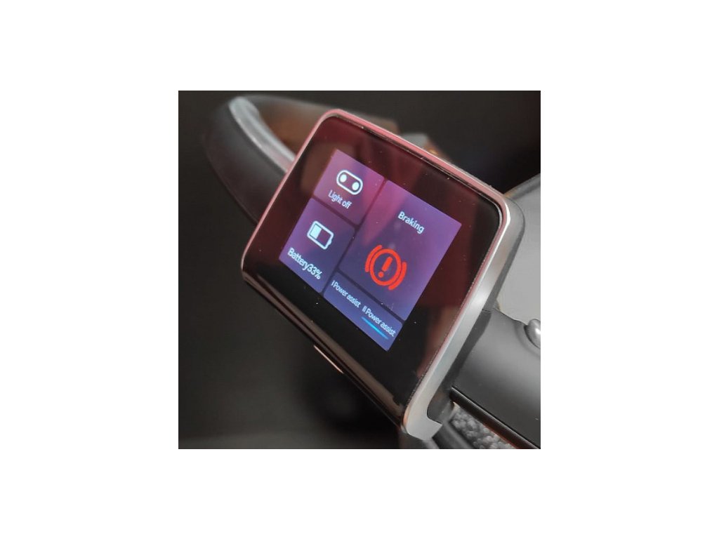 - Rukojeť s monitorem nabití baterie, rychlosti a osvětlení