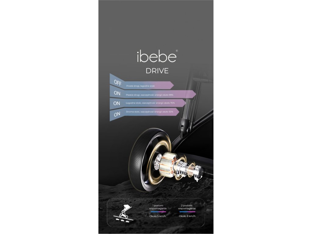 iBebe kočárek s elektronickou brzdou a asistencí jízdy Stop&Drive - Black