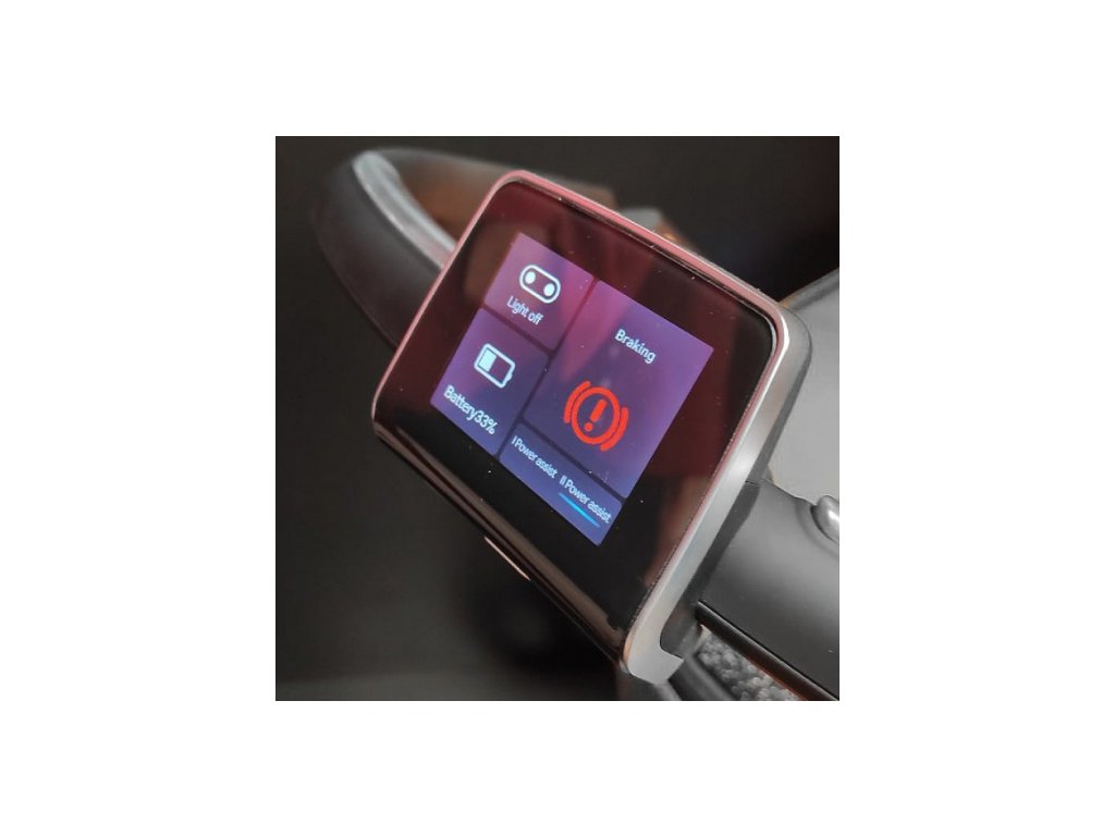 - Rukojeť s monitorem nabití baterie, rychlosti a osvětlení