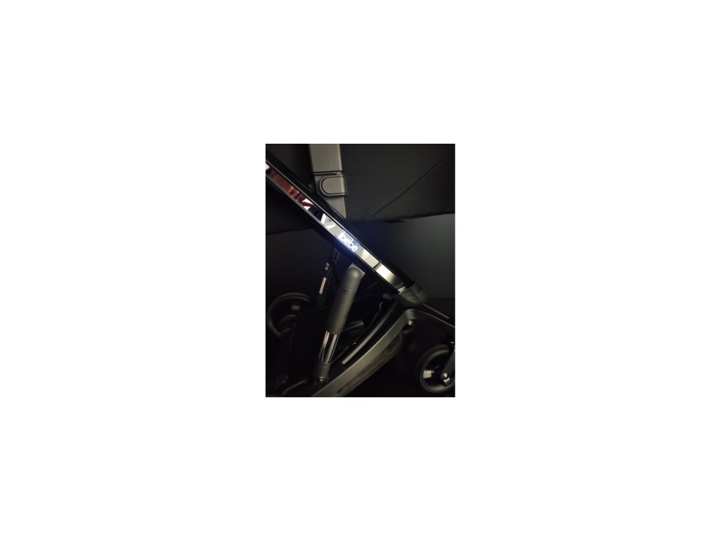 Elektronický asistent řízení. Kočárek je vybaven elektronickým motorem, který pomáhá s řízením a umožňuje rodičům ovládat rychlost a směr pomocí vestavěných ovladačů. To usnadňuje navigaci na delší vzdálenosti a v náročném terénu, což je ideální pro dlouhé procházky nebo návštěvy míst s různorodým terénem.