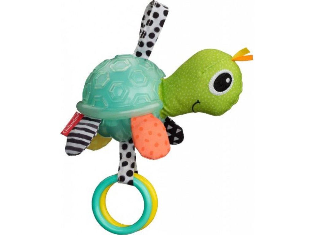 Hračka v podobě želvičky nabízí různorodé textury ke zkoumání rukama i ústy. Pomáhá rozvíjet jemnou motoriku i jednotlivé smysly dítěte. S pomocí poutka na suchý zip hračku snadno zavěsíte na autosedačku, kočárek apod.