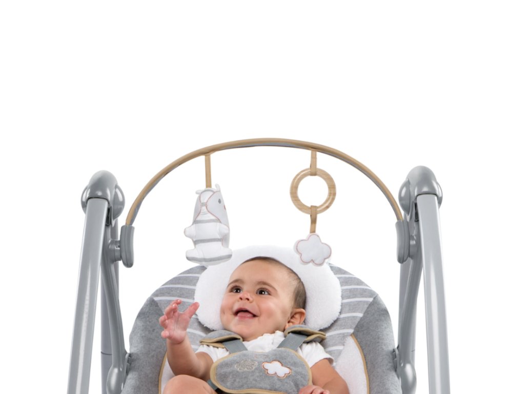 Díky technologii snímání hmotnosti se rychlost houpání automaticky přizpůsobuje rostoucí hmotnosti děťátka. Neutrální design je vhodný pro dívky i chlapce a houpačka je skvělým tipem na dárek k narození miminka.