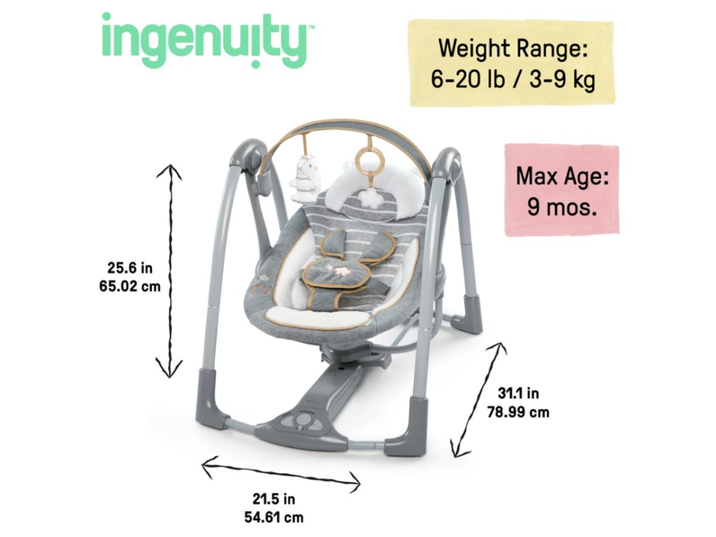 Když máte před sebou cestu, přenosná houpačka Ingenuity Swing'n Go Vám bude věrným společníkem. Kompaktní konstrukce se snadno přenáší a nabízí všechny funkce, které byste očekávali od plnohodnotné houpačky.
