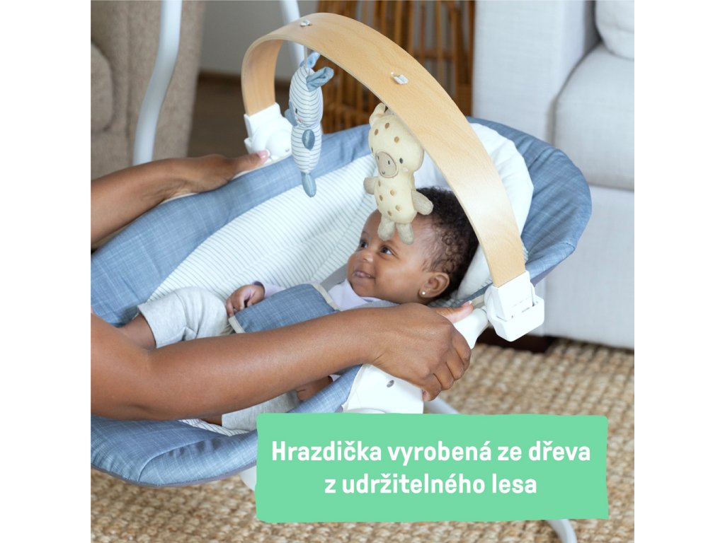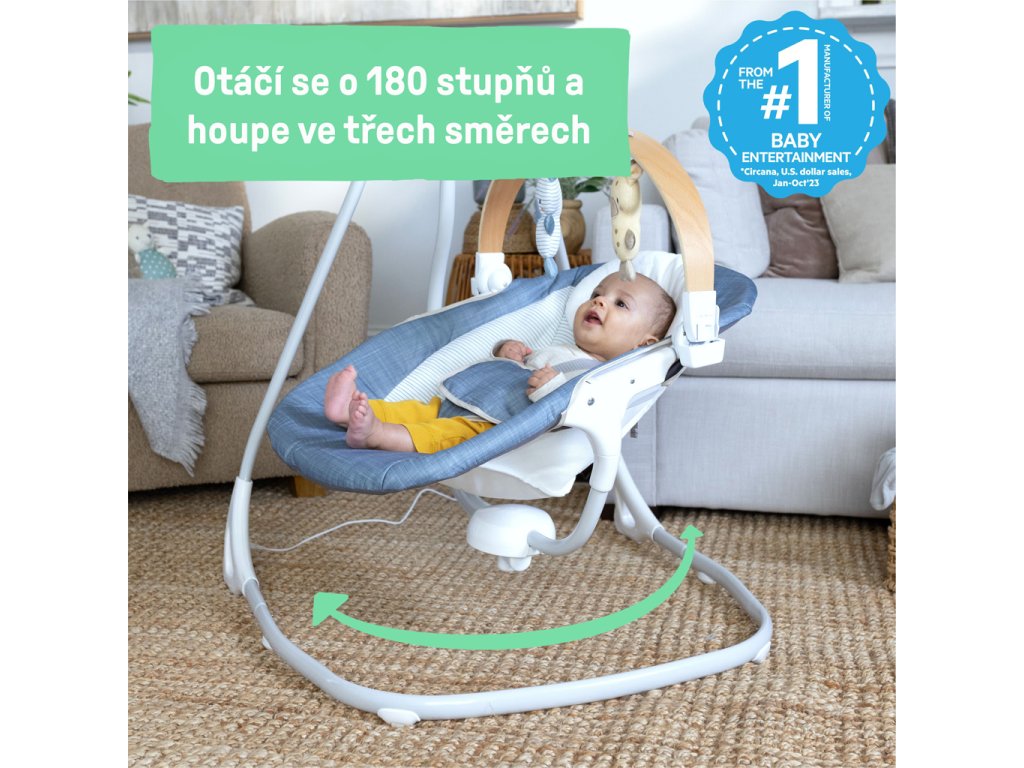 Dopřejte svému miminku klid, pohodu a jemné pohupování s luxusní houpačkou Ingenuity Chambray. Elegantní design v jemných tónech Chambray se hodí do každého interiéru, zatímco měkoučké polstrování a podpora hlavičky zajišťují maximální komfort od narození.