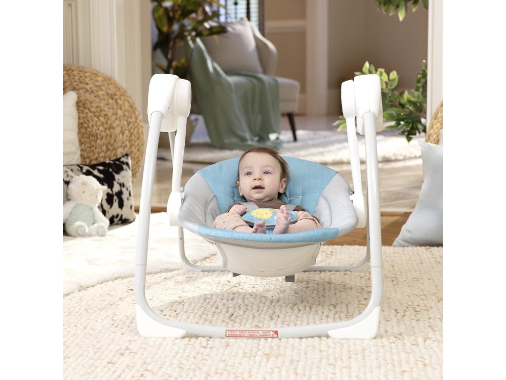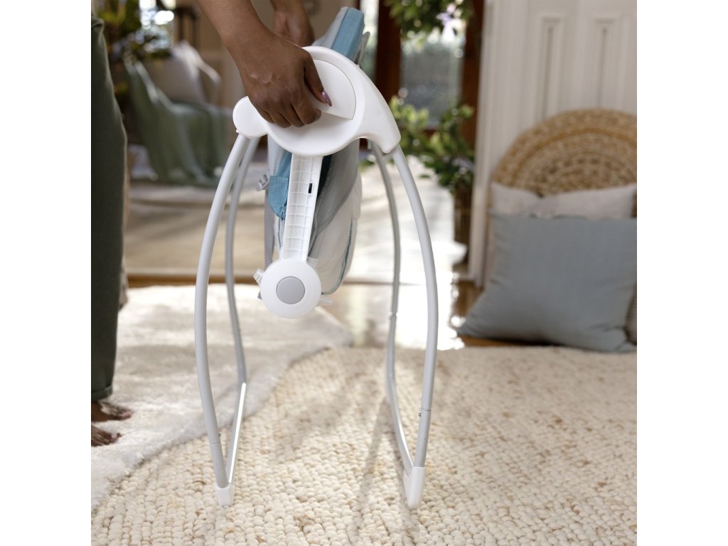 Lehký a skládací design této houpačky má integrovanou rukojeť pro snadnou přepravu a skladování. Udržujte dítě v bezpečí pomocí nastavitelných 5-bodových pásů.