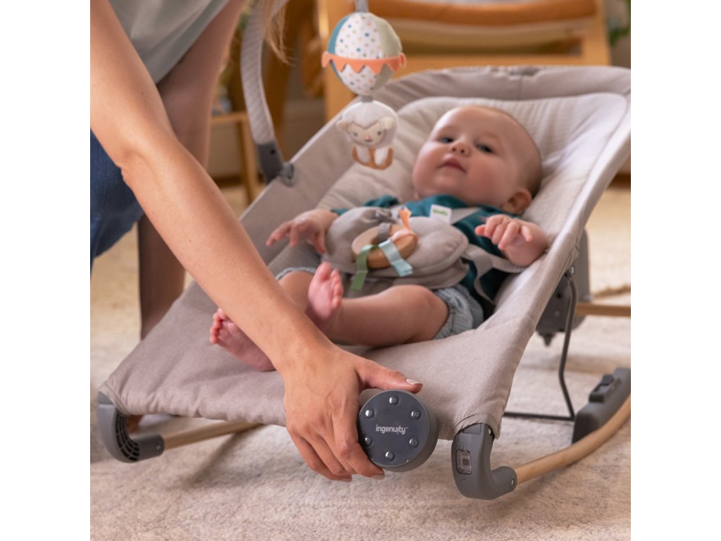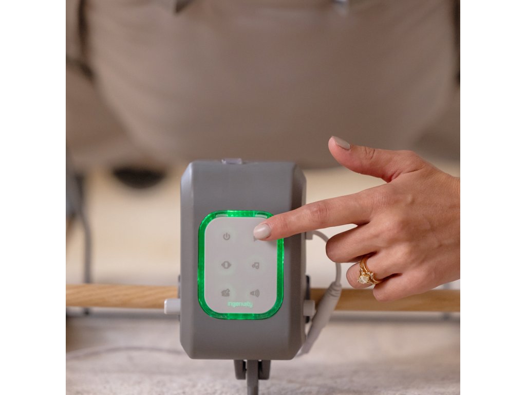 Ovládání je intuitivní díky technologii GentleTouch™, kterou hravě zvládnou rodiče, prarodiče i pečovatelé. Vaše dítě se může pobavit s odnímatelnou hrazdičkou, na které visí plyšový balón a dřevěný kroužek se štítky na zkoumání.