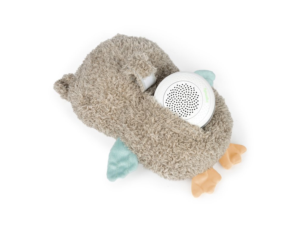 Plyšová hračka ve tvaru spící sovy s reproduktorem v bříšku se snadno připevní ke konstrukci postýlky. Reproduktor PockabÏ Baby™ je vybaven připojením Bluethooth, má možnost přehrávat hudbu v intervalech 30, 60, 90 minut pomocí časovače, po kterém následuje automatické vypnutí, a je vybaven dobíjecí baterií. S reproduktorem můžete dítě uspávat předem nahranými uklidňujícími zvuky přírody a melodickými ukolébavkami. Jemné barvy sovičky Nally doplní výzdobu dětského pokoje a jsou zábavným dárkem na dětskou oslavu.