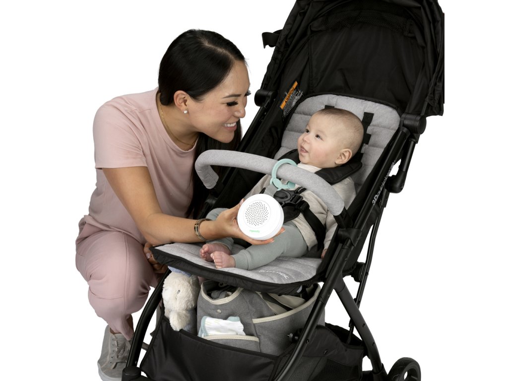 Je vybaven časovačem automatického vypnutí, který umožňuje naplánovat uklidňující zvuky na 30, 60 nebo 90 minut. Díky kompaktnímu designu se snadno vejde na dětskou komodu, do tašky na pleny, na kočárek a podobně. Díky odnímatelnému článku jej můžete připnout k výbavě maminky, abyste dítě uklidnili nebo zabavili na cestách.