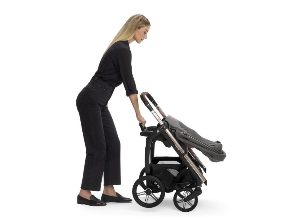 - Použití kočárku je snadné a praktické-snadno si poradí se všemi typy povrchů díky velkým polyuretanovým kolečkům s tlumením nárazů (průměr 196 mm vpředu a 260 mm vzadu).