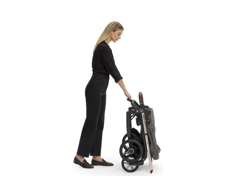 - Po složení je extrémně kompaktní, zůstává stát sám vzpřímený a rukojeť se nedotýká země.