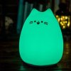 Lampička InnoGIO Kitty bude vašemu děťátku dělat příjemnou atmosféru při usínání a roztomilý design se současně stane pěknou dekorací dětského pokoje. Provedení z měkkého silikonu je příjemné na dotek. Po zapnutí tlačítkem se rozsvítí teplá bílá barva. Poklepáním začne lampička svítit v 7 barvách, které se po 3 sekundách prolínají. Dalším poklepáním lze barvu zastavit. Součástí výrobku je také dálkové ovládání s dosahem 5 m, kterým vybíráte režim změny barev, konkrétní barvu nebo intenzitu svícení. Praktické je automatické vypnutí po 2 hodinách.