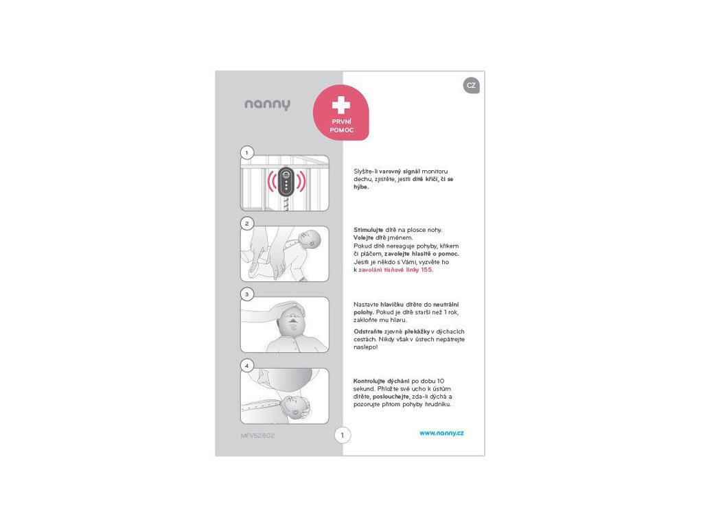 Nanny je certifikovaný zdravotnický prostředek určený ke sledování dýchání dítěte. Je vhodný pro miminka od 1 kg hmotnosti.