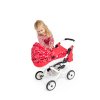 Praktický a moderní kočárek pro panenky Jasmine Kids 12 červený puntík s odolnou plastovou vaničkou.