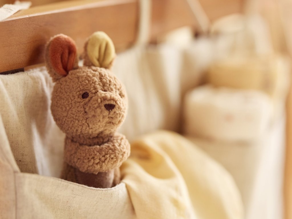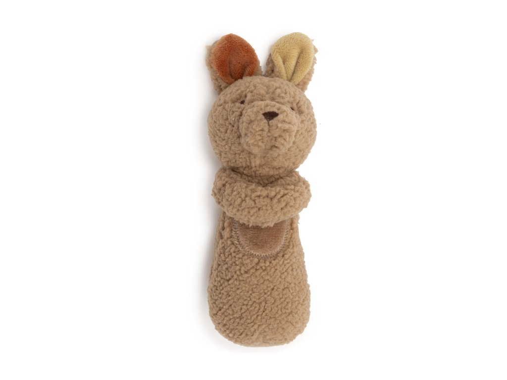 Chrastítko v podobě roztomilého klokana z měkkého fleece materiálu má tvar pro snadné uchopení a při pohybu jemně chrastí.