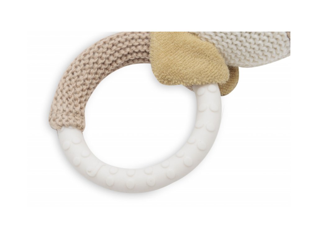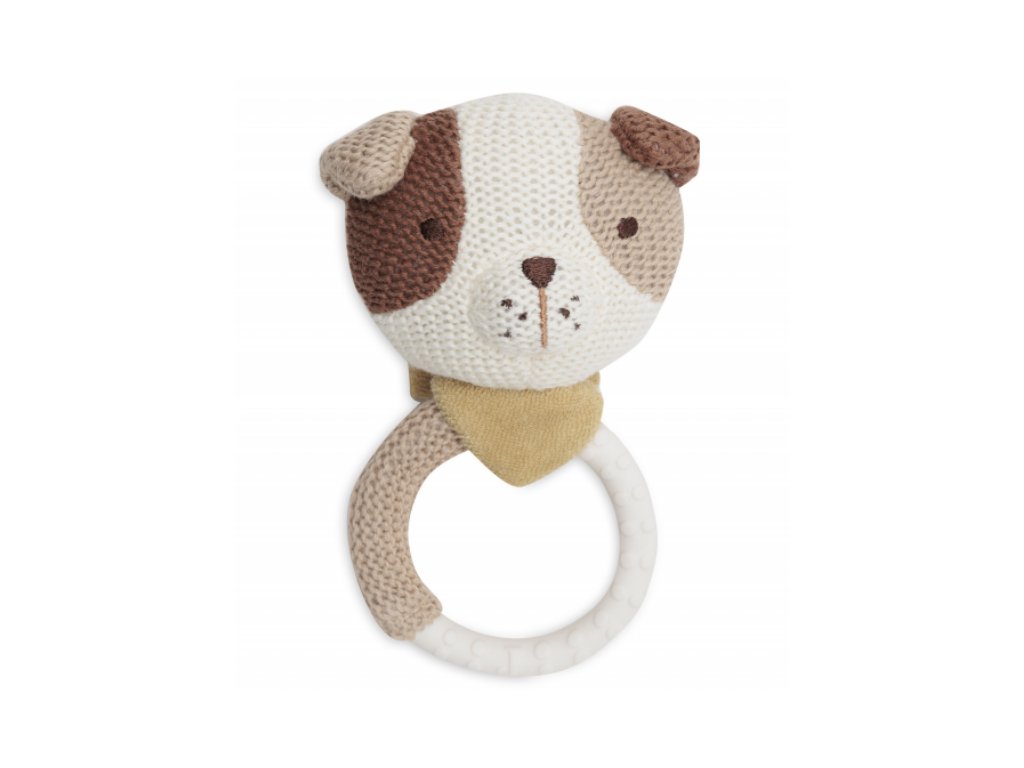 Silikonové kousátko s roztomilou pletenou hlavičkou pejska Micka má tvar pro snadné držení. Měkký silikonový materiál pomáhá zmírnit bolest při prořezávání zoubků.