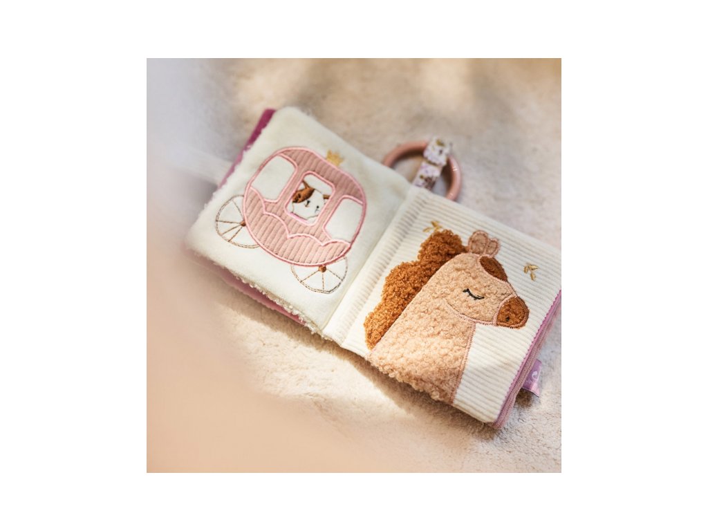 Roztomilá textilní knížka s pohádkovými motivy a zvířátky je ideální první knížkou pro vaše miminko. Je plná barev, textur a zvuků, které vaše dítě zabaví a zároveň podpoří rozvoj jeho smyslů i motorických dovedností.