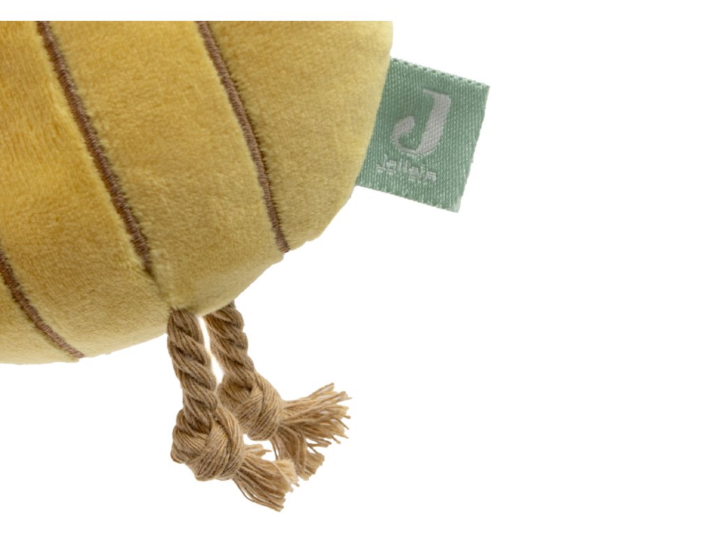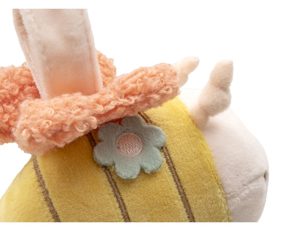 Něžná závěsná hračka v podobě včelky je ideálním společníkem pro vaše miminko na procházkách a výletech. Hračka z měkkého příjemného materiálu při pohybu jemně cinká a při zmáčknutí šustí.