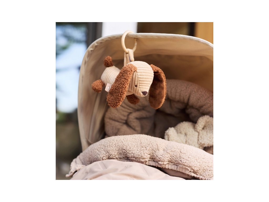 Roztomilý závěsný pejsek Diego z měkké žebrované látky s buklé detaily je ideálním společníkem pro vaše miminko na procházkách a výletech. Díky plastovému kroužku jej snadno připevníte na kočárek nebo autosedačku.
