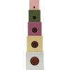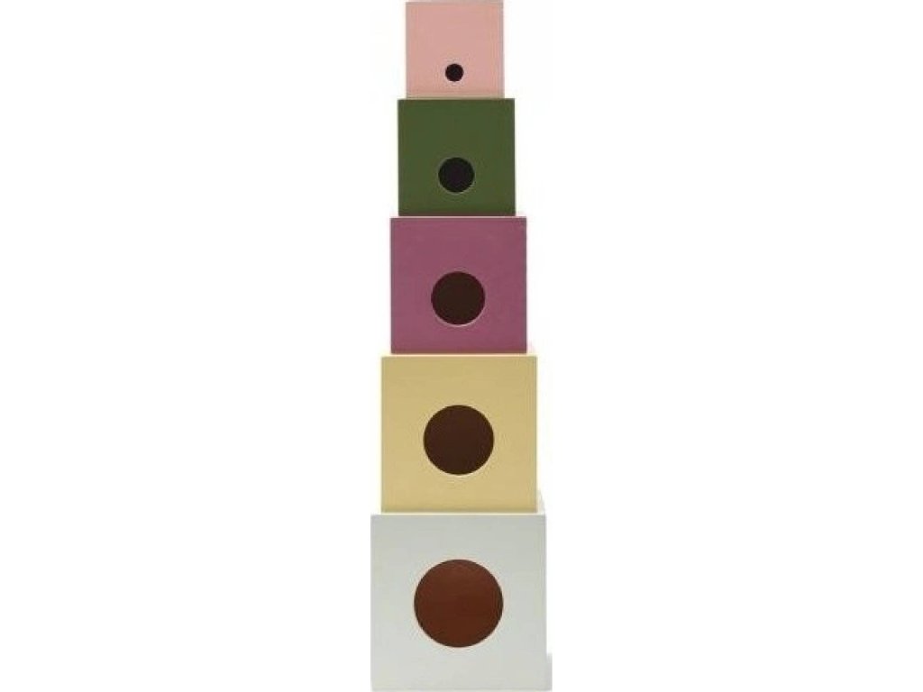 Dřevěné kostky v krásných pastelových barvách je možné stavět na sebe i vkládat do sebe, řadit je podle velikosti, vkládat do nich jiné hračky apod.