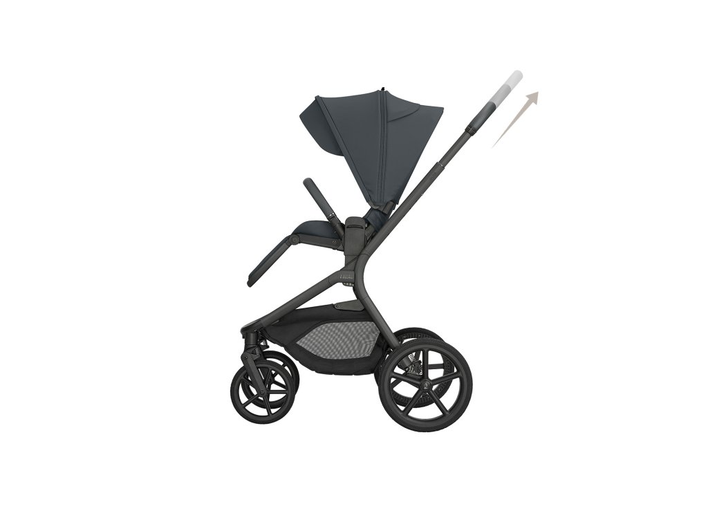 Sportovní sezení je možné nasadit po i proti směru jízdy a díky tlačítkům s pamětí ho uvolníte z podvozku pohodlně jednou rukou. Výšku sezení můžete nastavit do dvou poloh pro přizpůsobení kočárku podle výšky rodiče. Odnímatelné madlo před dítětem je otočné o 360° pro snadnou manipulaci s dítětem a potažené příjemnou ekokůží.
