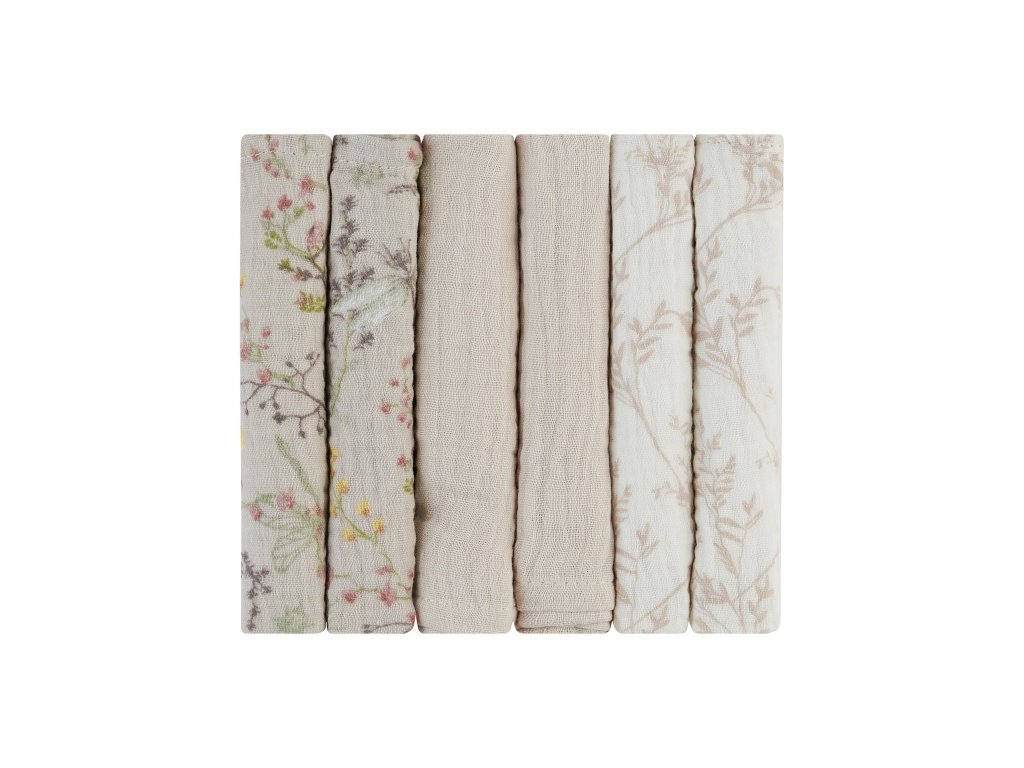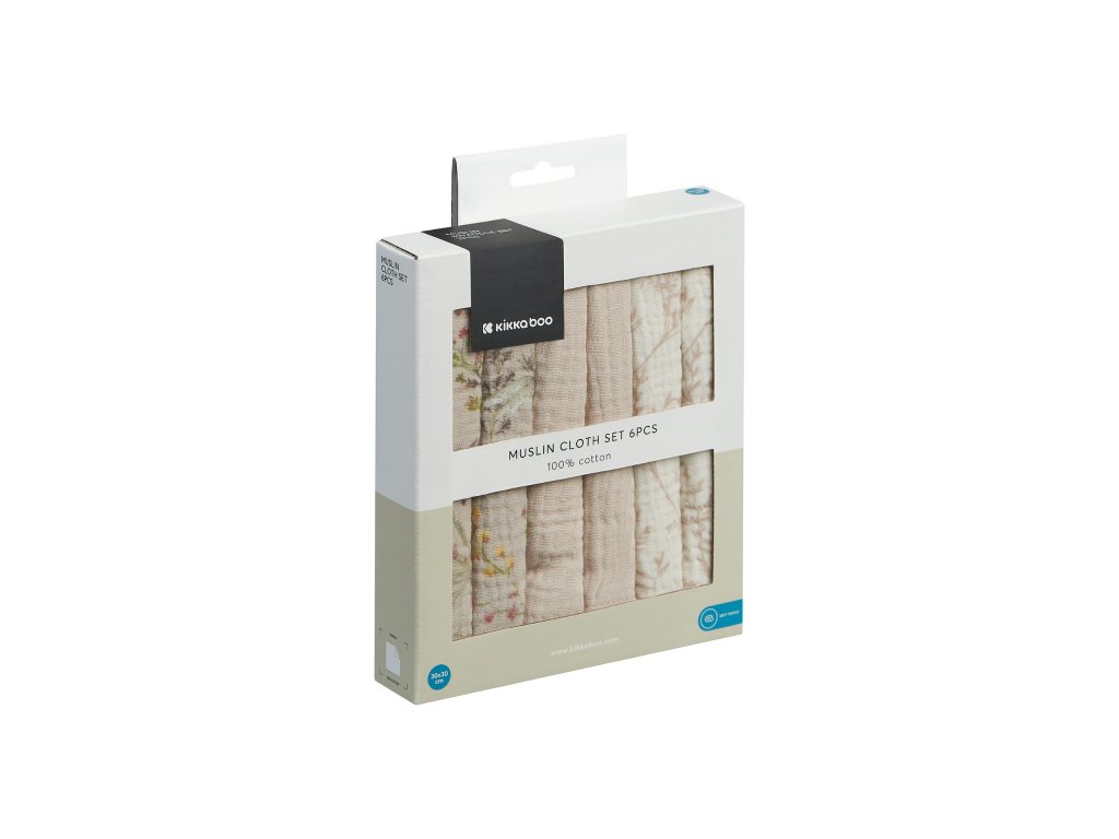 KikkaBoo Pleny mušelínové 30x30 cm 6ks Secret Garden Beige