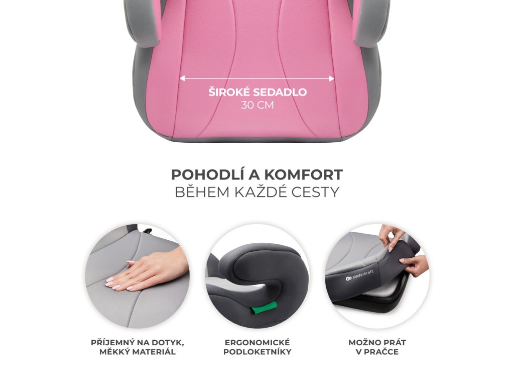 podsedák I-BOOST I-SIZE je široký a hluboký, takže se v něm budou cítit pohodlně i větší děti. Má také extra vrstvu měkké pěny v sedadle pro pohodlnou jízdu. Její měkké, snadno snímatelné a pratelné čalounění se snadno udržuje v čistotě, což zajišťuje svěžest po celou dobu používání.