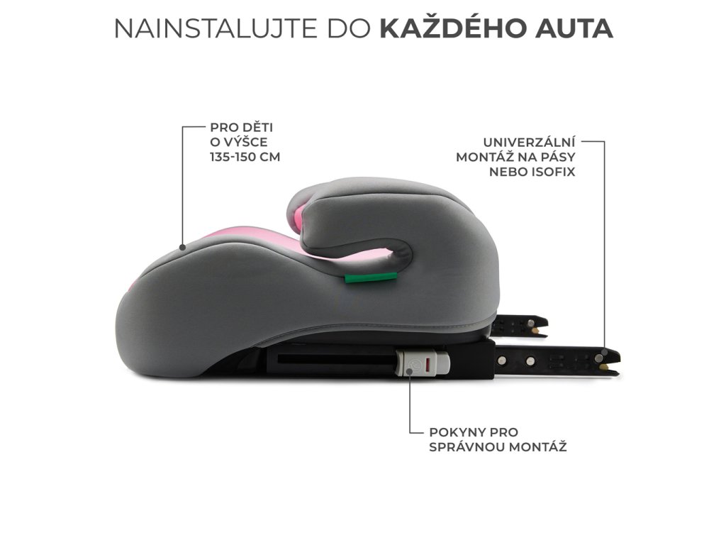 I-BOOST I-SIZE je autosedačka, kterou lze použít v každém autě. Podsedák do auta vyniká na trhu díky crash testům, kterými úspěšně prošel a které potvrzují jeho soulad s přísnými požadavky normy R129 i-Size. Důležité je, že jeho univerzálnost se odráží v možnosti instalace do jakéhokoli typu vozidla. Díky možnosti instalace ISOFIX poskytuje podsedák dodatečnou stabilitu, ale jeho konstrukce také umožňuje bezproblémové použití ve vozidlech bez systému ISOFIX. Díky tomu je podsedák I-BOOST I-SIZE bezpečným a flexibilním řešením, které je ideální pro různé modely vozidel.