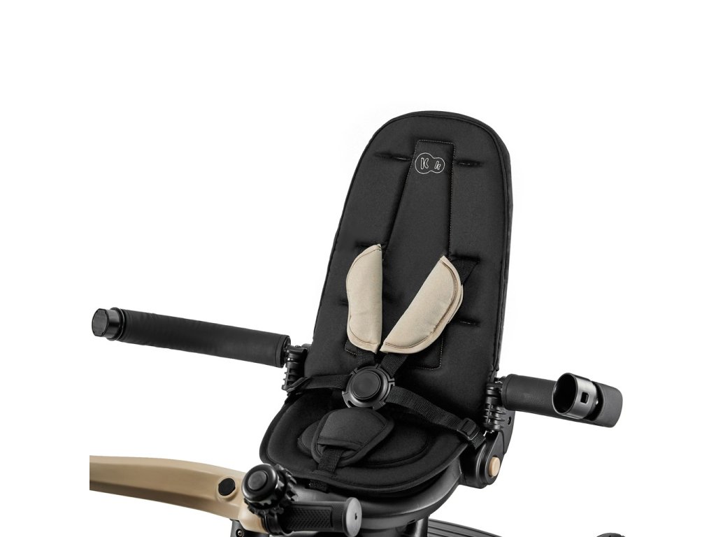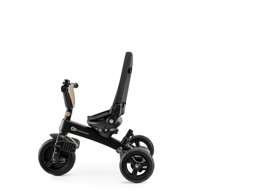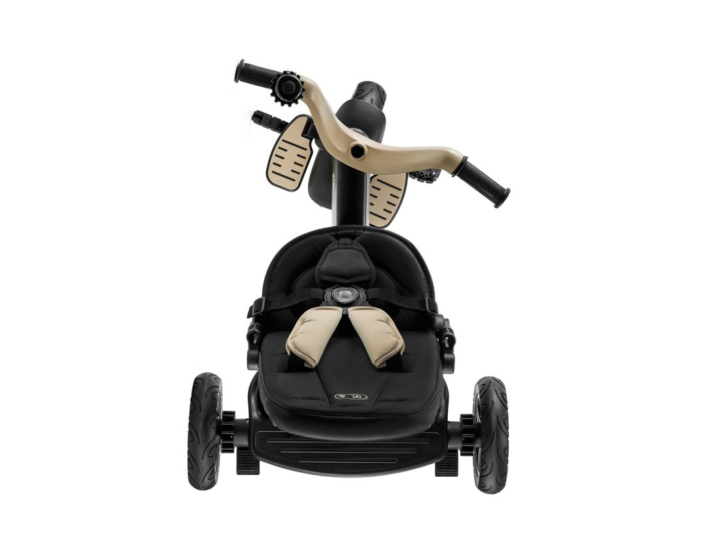 - pohodlí v každé situaci - sedadlo kola je nejen otočné, ale má také vysokou opěrku s možností sklopení do polohy pololehu, která se mimořádné hodí, kdy dítě zaspí. Barierka s potahem z umělé kůže je příjemná na dotek a opěrka nohou je skvělá, když si dítě chce odpočinout od pokusů o šlapání.