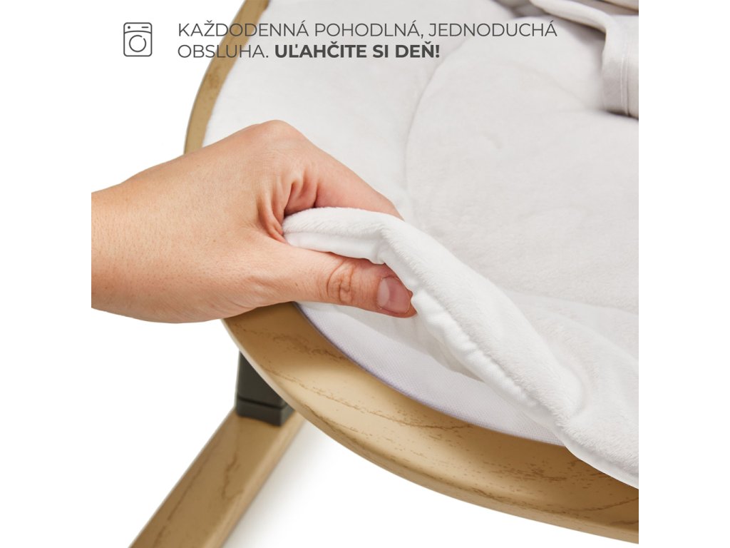 Děti potřebují blízkost jako nikdo jiný. Elsu je symbolem moderního designu, který v domácnosti působí nejen elegantně, ale zaručuje také pohodlí pro děťátko. Pečlivě vybraný materiál na houpací křeslo je příjemný na dotek a správná měkkost obejme jako rodičovská náruč. Víme, jak důležitá je hygiena, proto bylo sedátko navrženo tak, aby se dalo snadno čistit. Jeho potah lze kdykoli odejmout a vyprat.