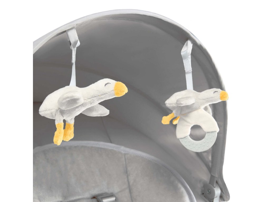 - Praktické příslušenství – odnímatelné hračky se postarají o zábavu děťátka, zatímco odnímatelná budka a integrovaná síťka proti hmyzu mu zajistí pohodlí.