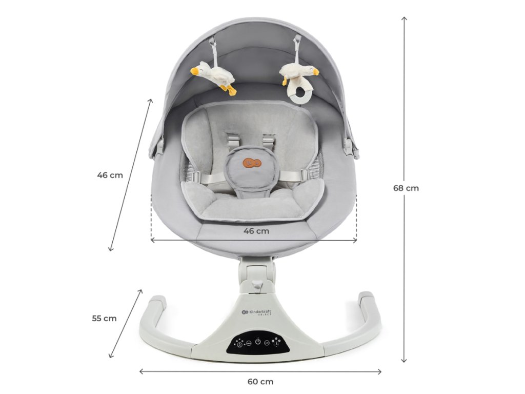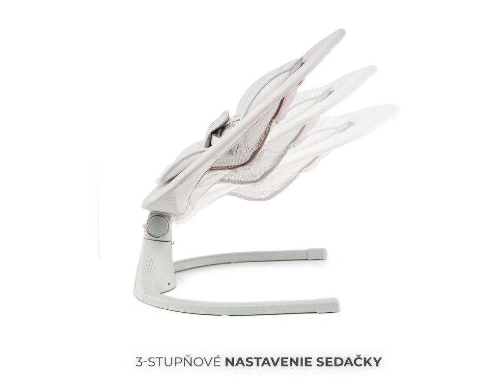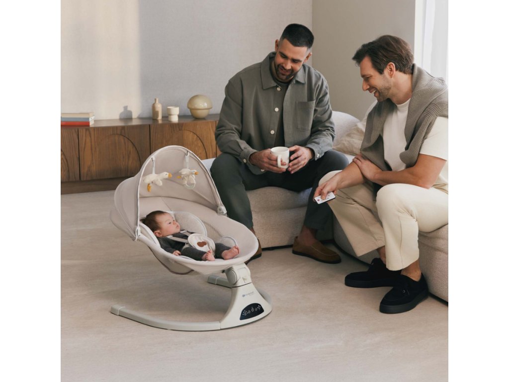 Díky intuitivnímu dotykovému panelu a dálkovému ovládání mohou rodiče ovládat houpání bez přerušení svých aktivit a přizpůsobit jej aktuálním potřebám děťátka. Lehká konstrukce houpacího křesla umožňuje snadné přenášení, zatímco ergonomická sedací část s extra měkkou vyjímatelnou vložkou a 3-polohovým nastavením sedačky zaručuje nejen správnou polohu pro vaše dítě, ale také jeho pohodlí.
