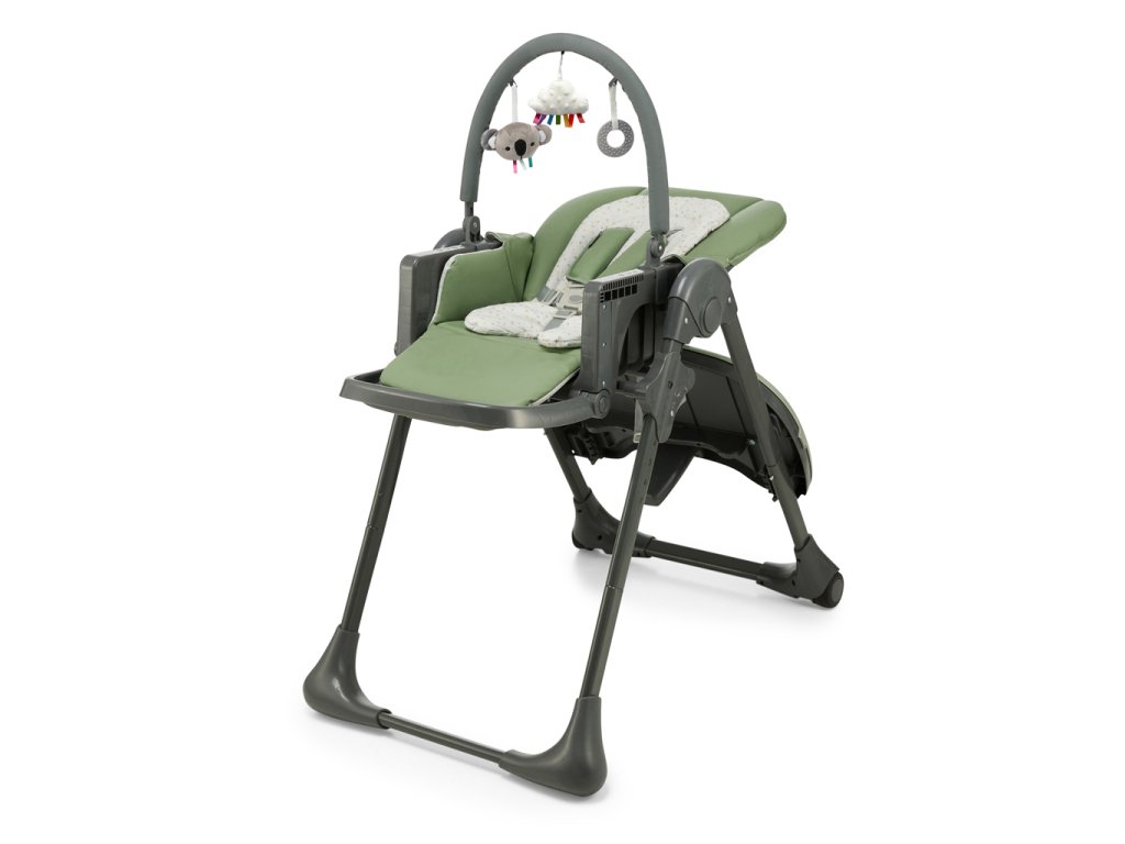 Vysoká židle TUMMIE má nastavitelnou opěrku zad (4 možnosti) a podnožku (3 možnosti). Přiložená vyjímatelná vložka s opěrkou hlavy pro nejmenší zajistí pohodlí a bezpečí každému dítěti. TUMMIE, které se používá jako lehátko, zabaví vaše ratolesti hrazdičkou, která dítě zaujme a povzbudí je k natažení paží a posílení úchopu.