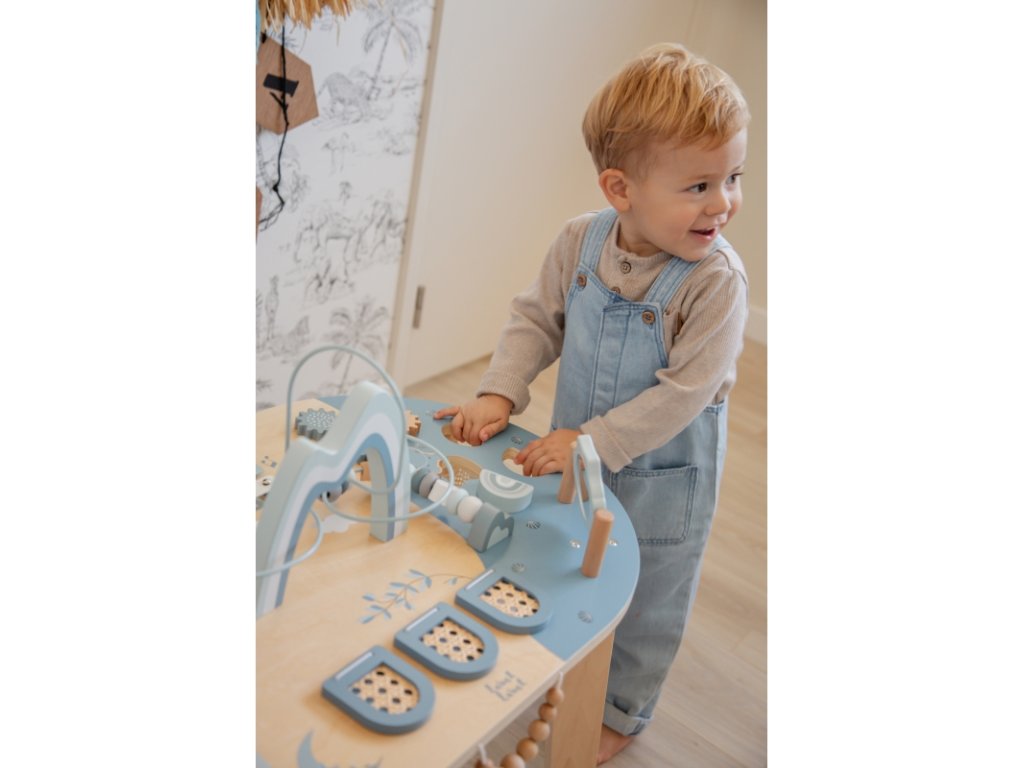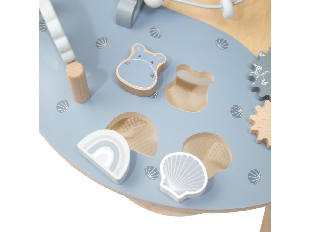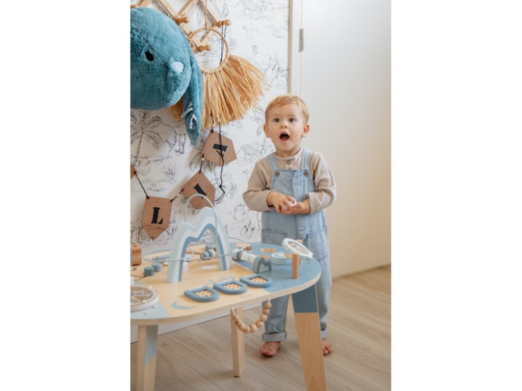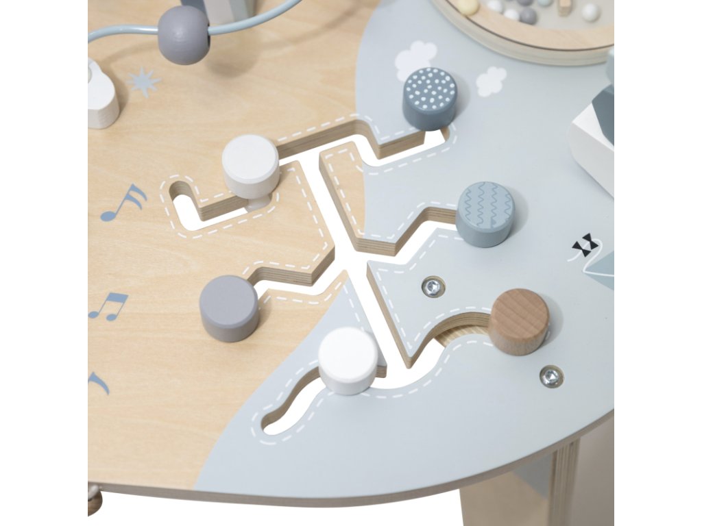 Podpořte tvořivost a zvídavost vašeho dítěte s tímto oválným hracím stolem – interaktivním herním centrem, které udrží malé ruce i hlavičky zabavené na dlouhé hodiny. Aktivity jako otevírací okénka Peek-a-Boo, stohovací kostky, vkládačka tvarů, zrcátko, spirála s korálky a mnoho dalších podnětů podporují rozvoj dítěte a povzbuzují jeho fantazii.