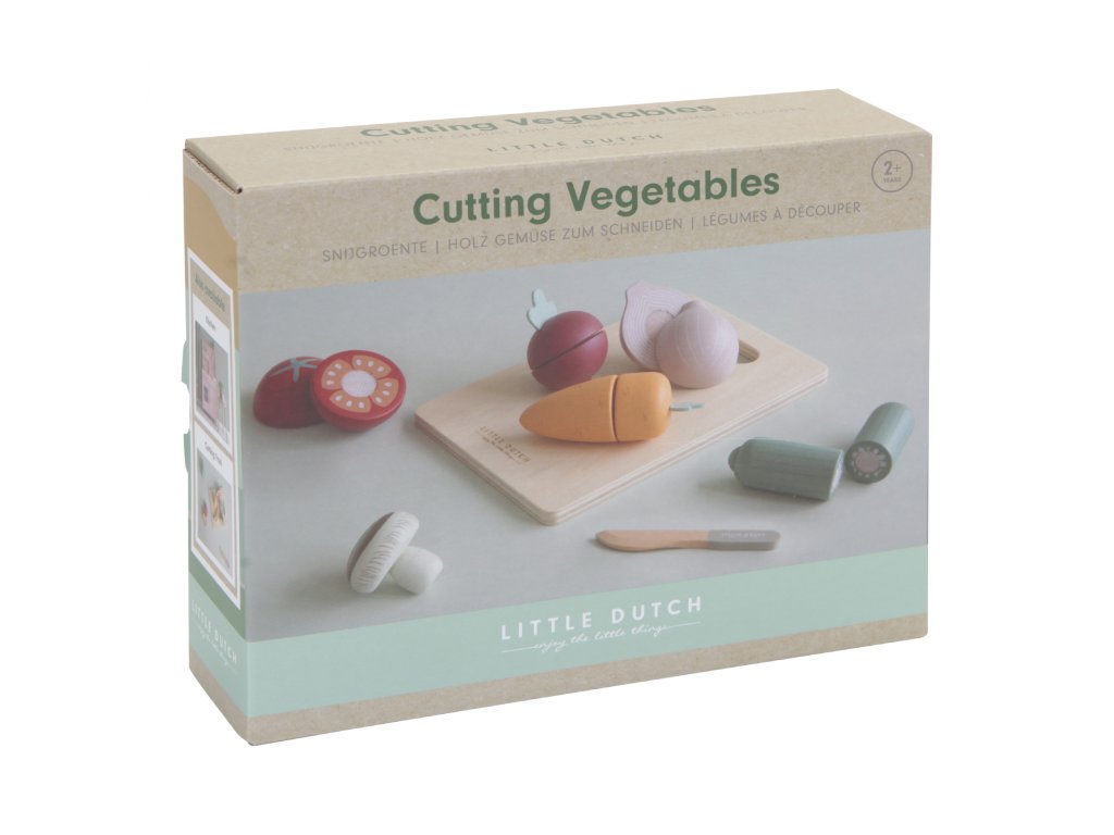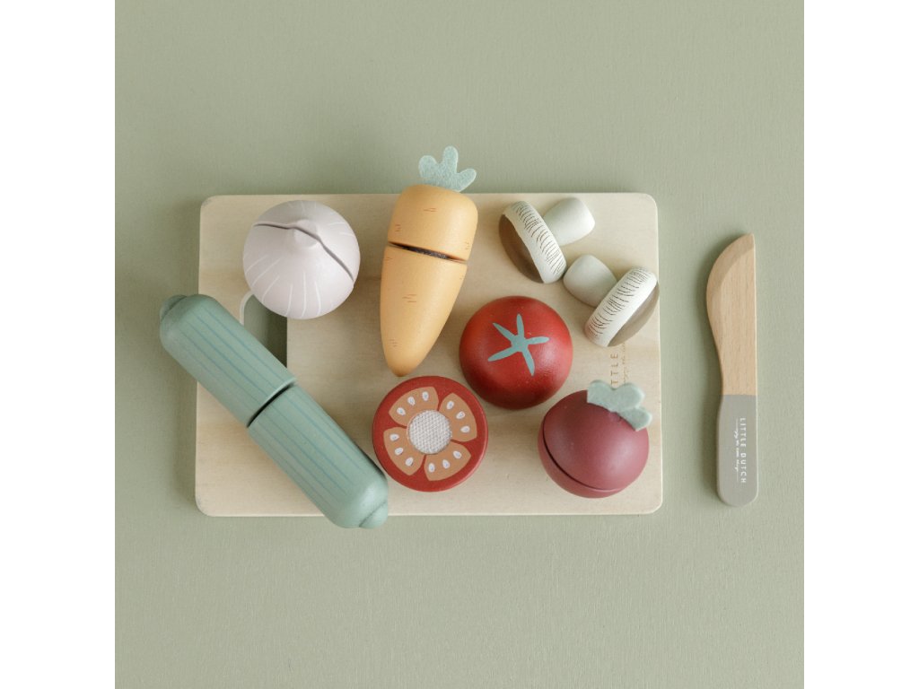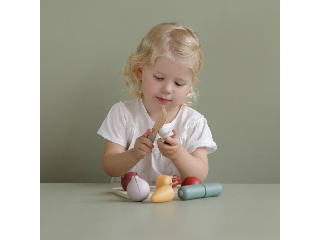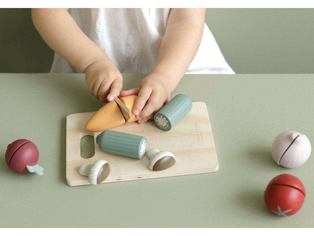 S dřevěnou krájecí zeleninou od Little Dutch si děti nejen vyhrají, ale zároveň se učí o zdravém jídle, rozvíjejí motoriku a napodobují dospělé v kuchyni.