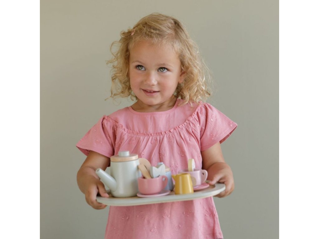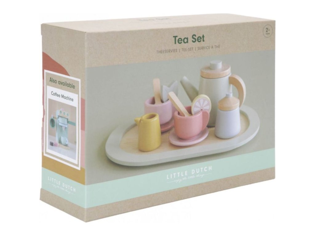 Little Dutch Dřevěný čajový set je nádherná hračka pro malé milovníky čaje a společného stolování. Tento kvalitně zpracovaný dřevěný set umožňuje dětem hrát si na čajový dýchánek s rodinou nebo plyšáky a rozvíjet tak jejich fantazii, sociální dovednosti i jemnou motoriku. Je vyroben z odolného, bezpečného a ekologického dřeva s jemnými pastelovými barvami typickými pro značku. Set obsahuje vše potřebné pro příjemné čajové posezení – od čajové konvičky až po šálky a dezert. Díky realistickému designu mohou děti napodobovat dospělé a zažívat radost z hraní na hostitele či hostitelku.
