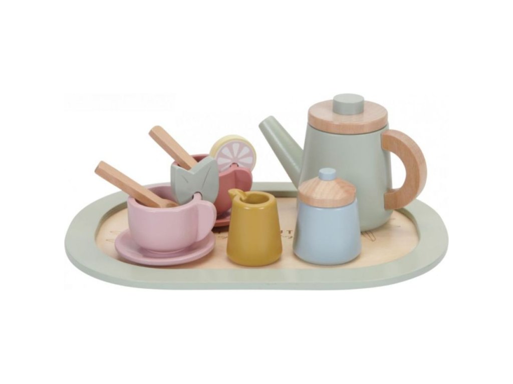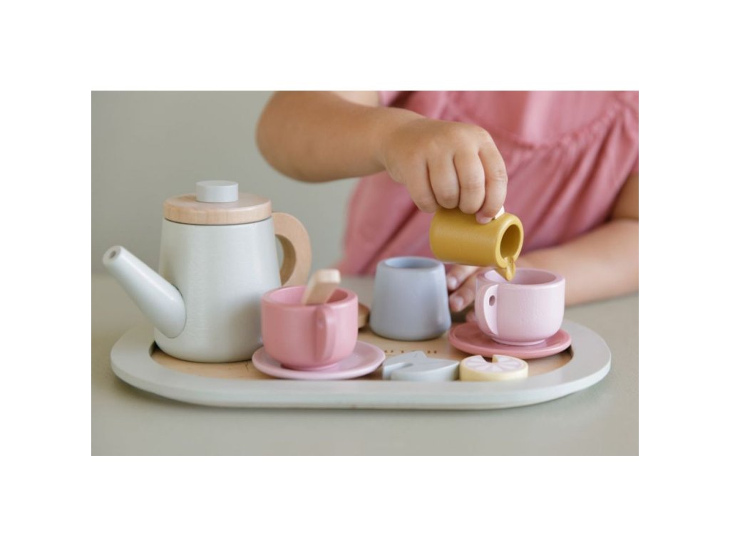 Dáte si čaj? S touto roztomilou dřevěnou čajovou soupravou může vaše ratolest podávat šálek lahodného čaje s mlékem, cukrem nebo plátkem citronu či snítkou máty.