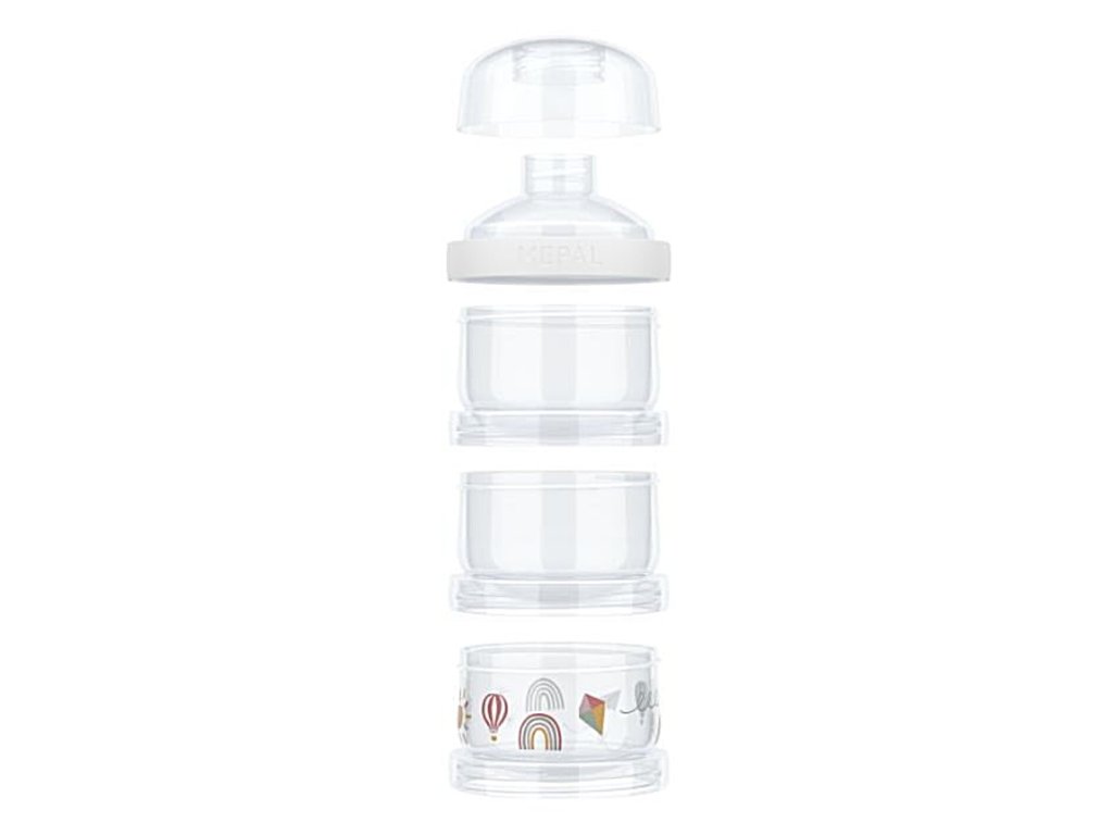 Třídílná nádoba na sušené mléko Little Dutch Forest Friends nabízí jednoduchý a hygienický způsob přípravy kojeneckého mléka doma na cestách. Nádoba obsahuje tři stohovatelné kelímky, které jsou jednotlivě uzavřeny šroubovacími víčky. Praktické nasýpací víčko nahoře usnadňuje dávkování sušeného mléka do lahve.