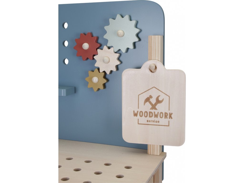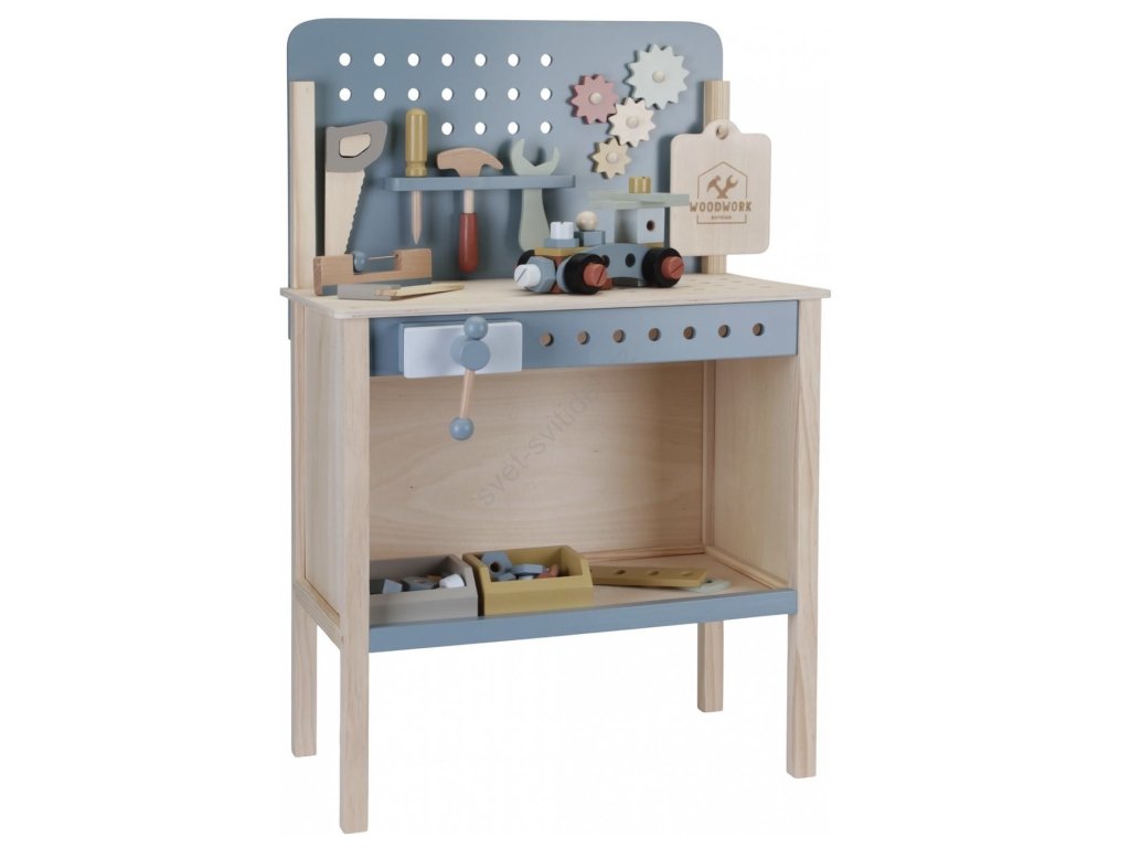 Dětský ponk pro malé kutily v kvalitním dřevěném provedení s nářadím a dalším příslušenstvím. Děti si mohou z jednotlivých dílů sestavit třeba autíčko nebo opravit, cokoli je potřeba.